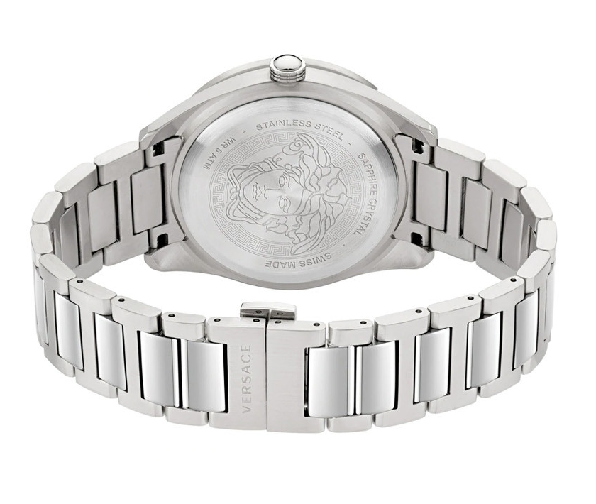 시계 뒷면은 솔리드백에 베르사체의 대표 로고인 메두사가 그려졌으며 용두는 손가락에 붙는 사이즈가 적당한 용두로 전체적인 밸런스가 우수한 시계라고 생각이 들었다.