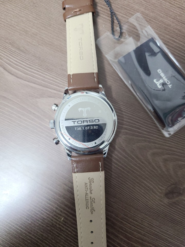시계 뒷면에는 토르소 마크와 모델 명이 있었고 역시 새 시계 답계 가죽 역시 깔끔했다.